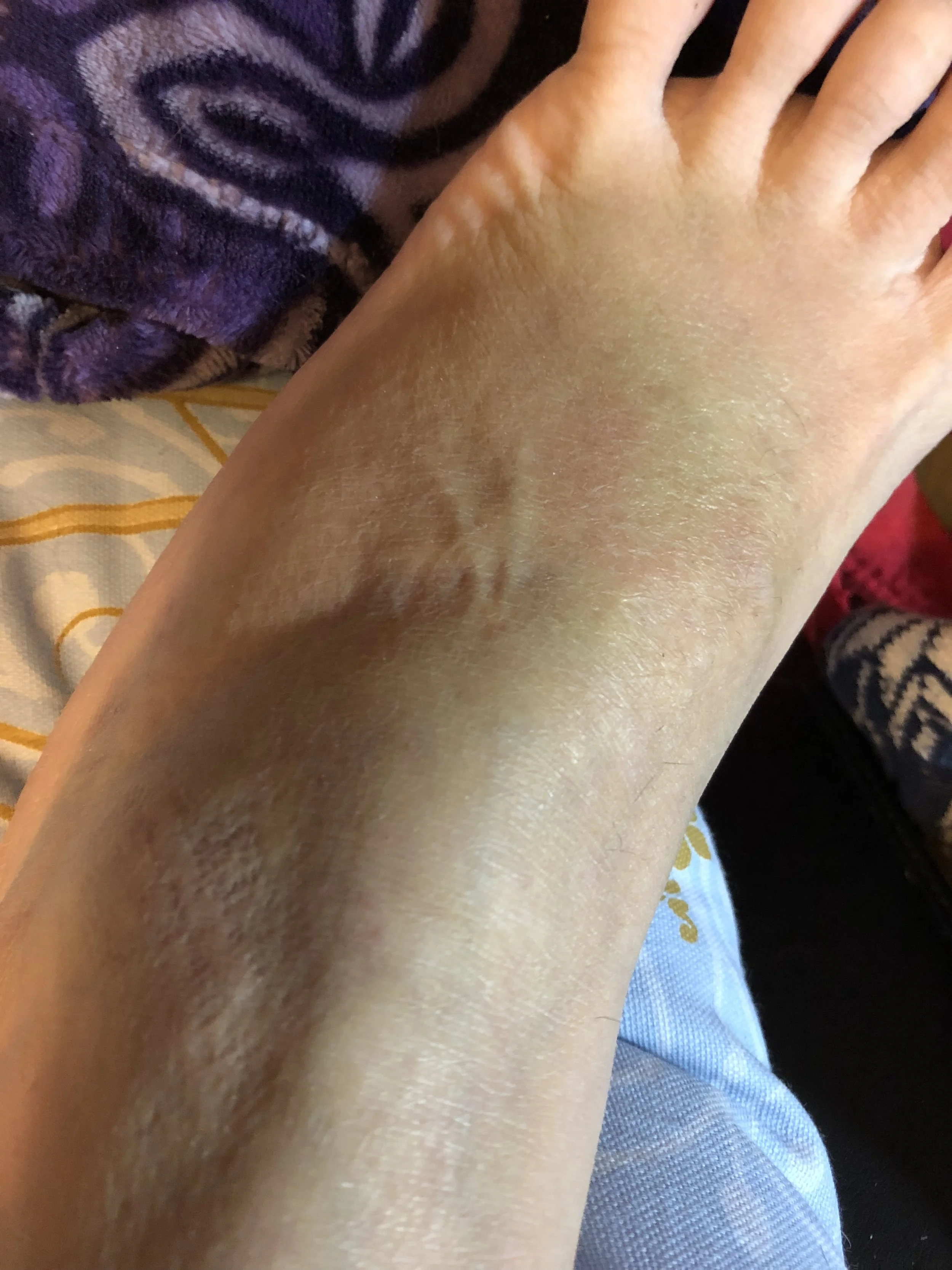 January 5, 2022 My Foot of Many Colors by Leslie Jacobs Here is a photo of my foot-6 days after the fall.