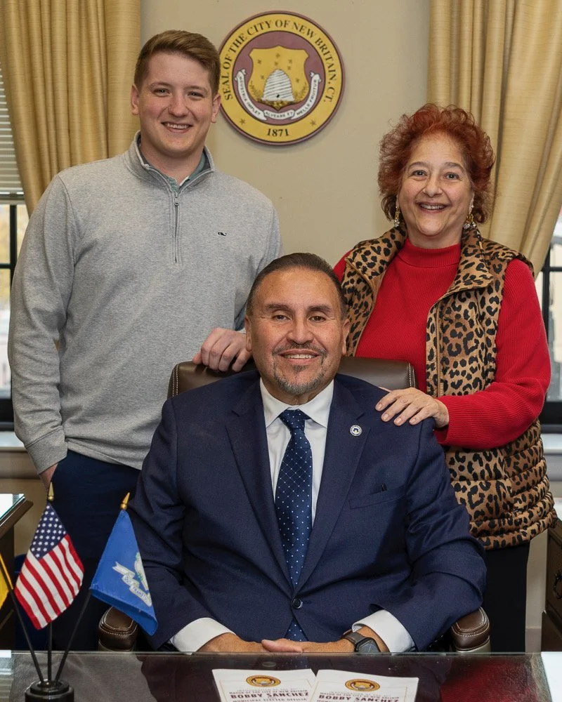 November 13, 2025 Mayor Sanchez of New Britain, his campaign manager and one of his many, many volunteers-me! by Leslie Jacobs Yesterday in the Mayors office—after the swearing in ceremony! These are good people!